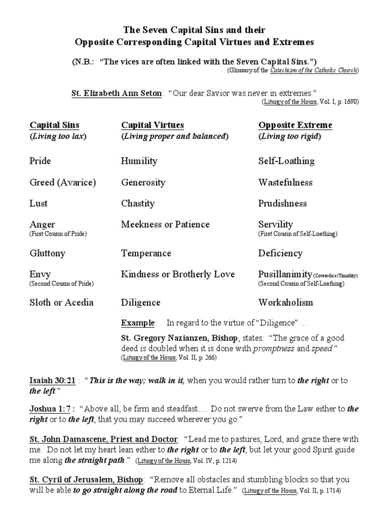 Seven Capital Sins Opposite Corresponding Virtues and Extremes PDF